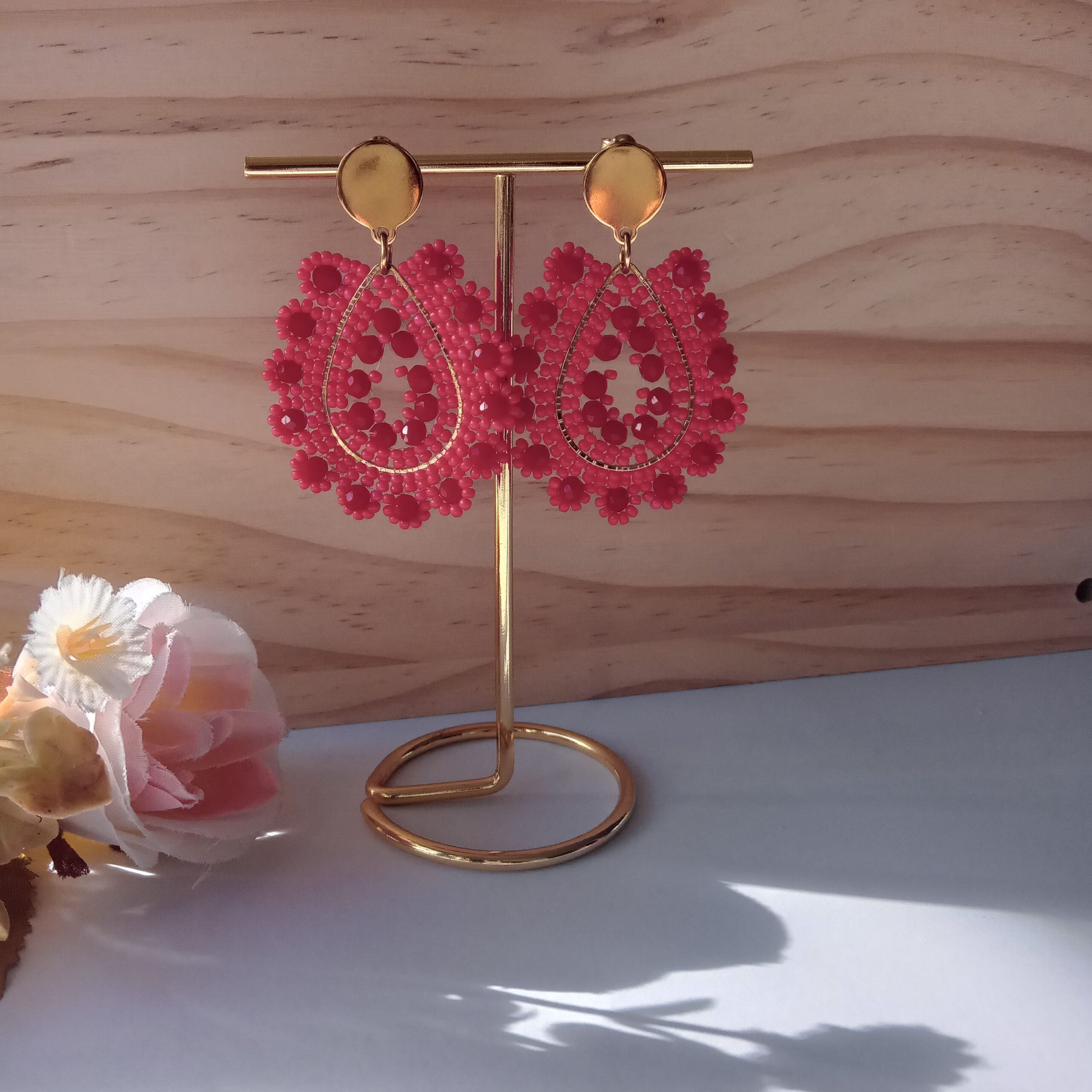 envíos a todo ChileAros fucsias, en rocalla Miyuki y cristales facetados fucsias. Base de aro dorado en forma de gota y gancho dorado en forma circular. Tejido con hilo muy resistente. Brillo, resistencia y color que enamora. Así son nuestros aros con Miyuki. ¡Agrégales alegría a tus días!